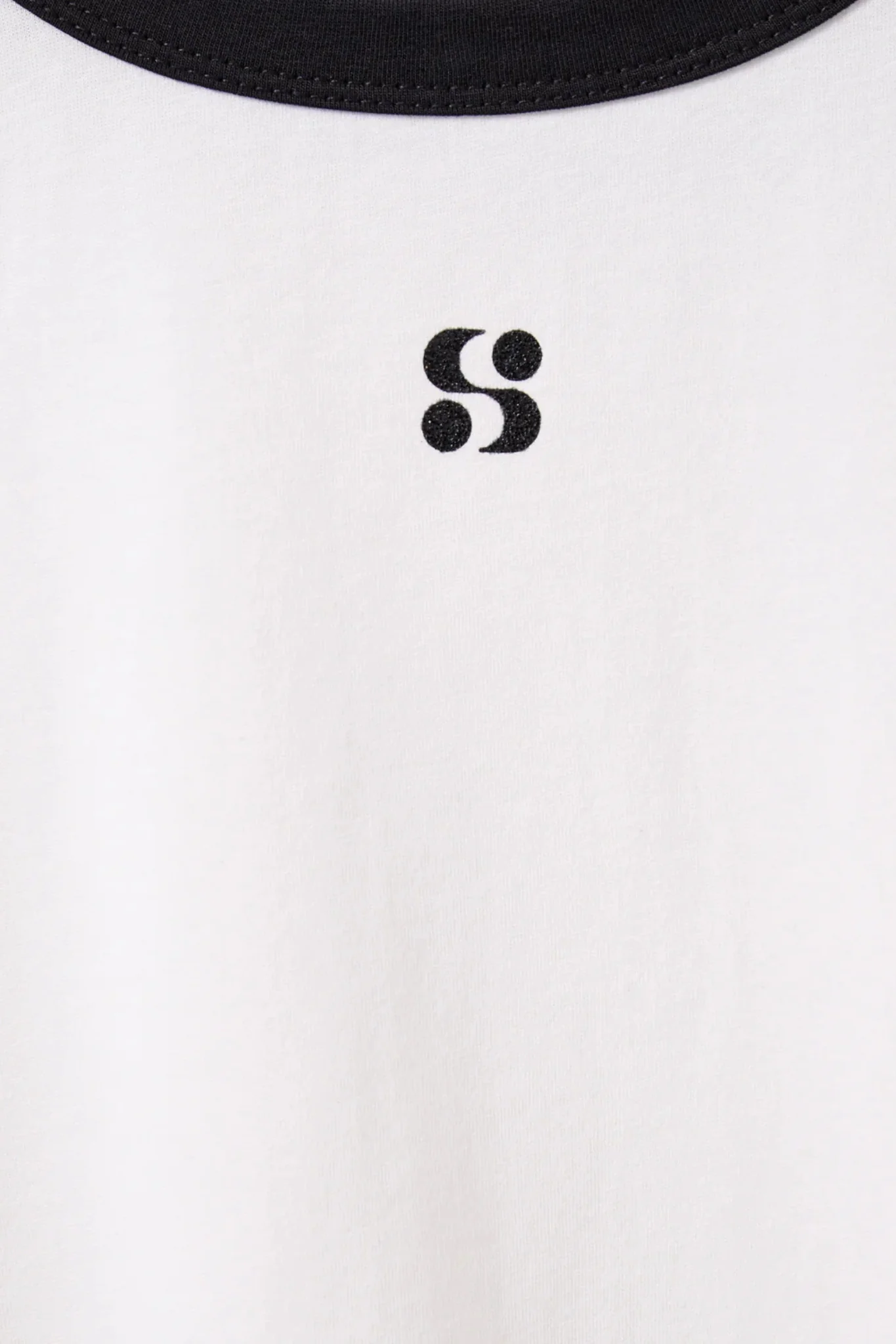 • Small black 'S' logo print on the chest