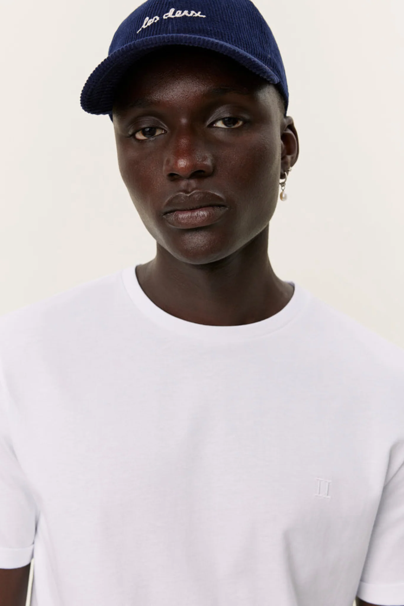 A soft cotton slim fit T-shirt with stitched roll-up sleeves and tonal embroidered logo at chest