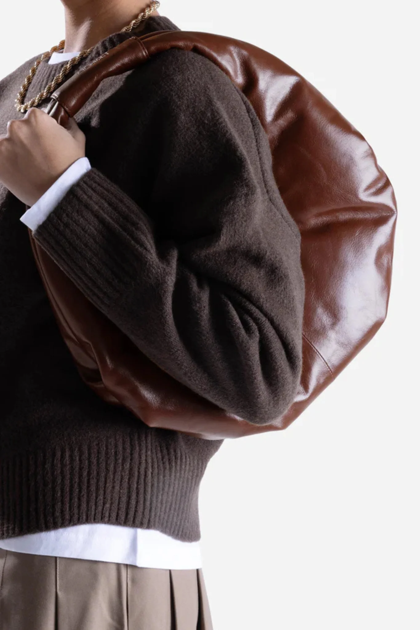 MOLLY SHINY WRINKLE LEATHER BAG - CHOCOLATE